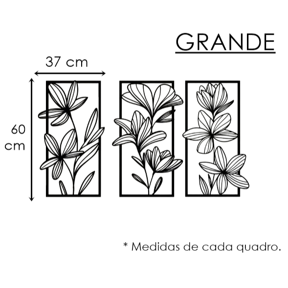 Quadro Decorativo Trio de Flores Vazadas em MDF