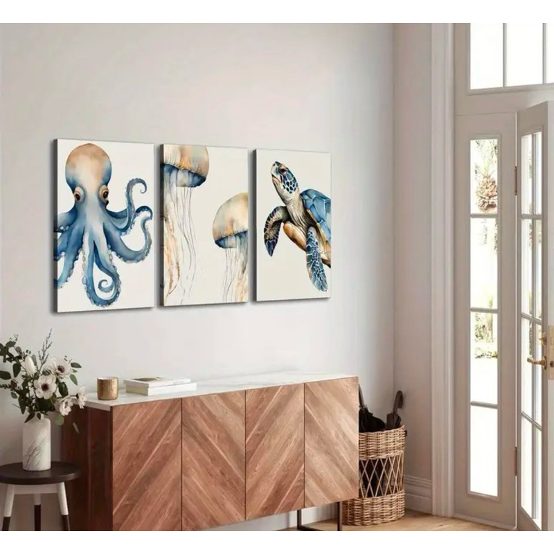 Quadro Decorativo Trio Fundo do Mar tartaruga praia Gigante 120x60cm.Decore quarto,sala,copa,escritórios.