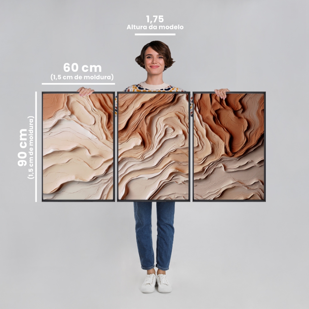 QUADRO DECORATIVO TRIPTICO ABSTRATO GEOMÉTRICO FORMAS PARA SALA, QUARTO, ESCRITÓRIO 60x90