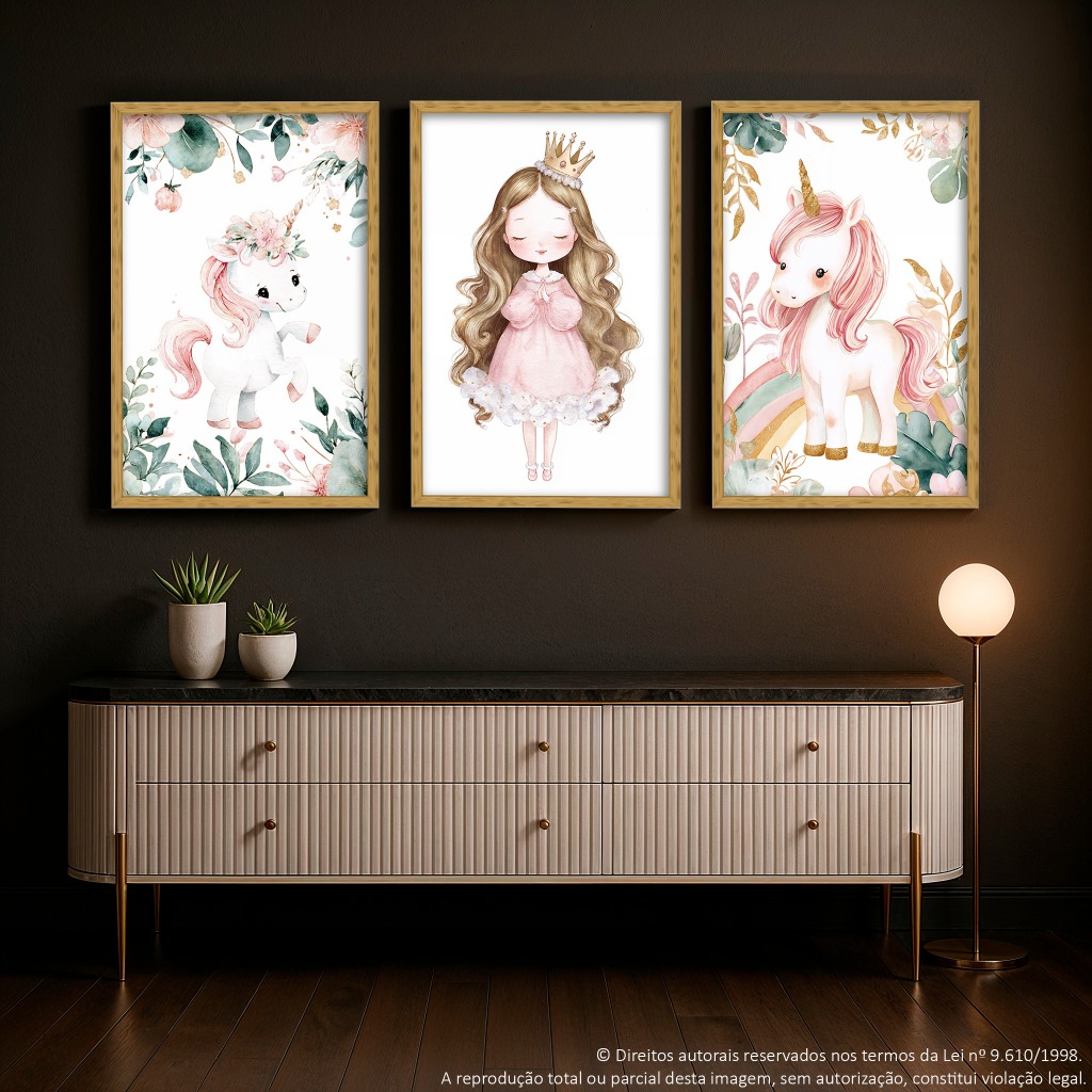 QUADRO DECORATIVO UNICORNIO ARCO IRIS PRINCESA QUARTO CRIANÇA BEBÊ