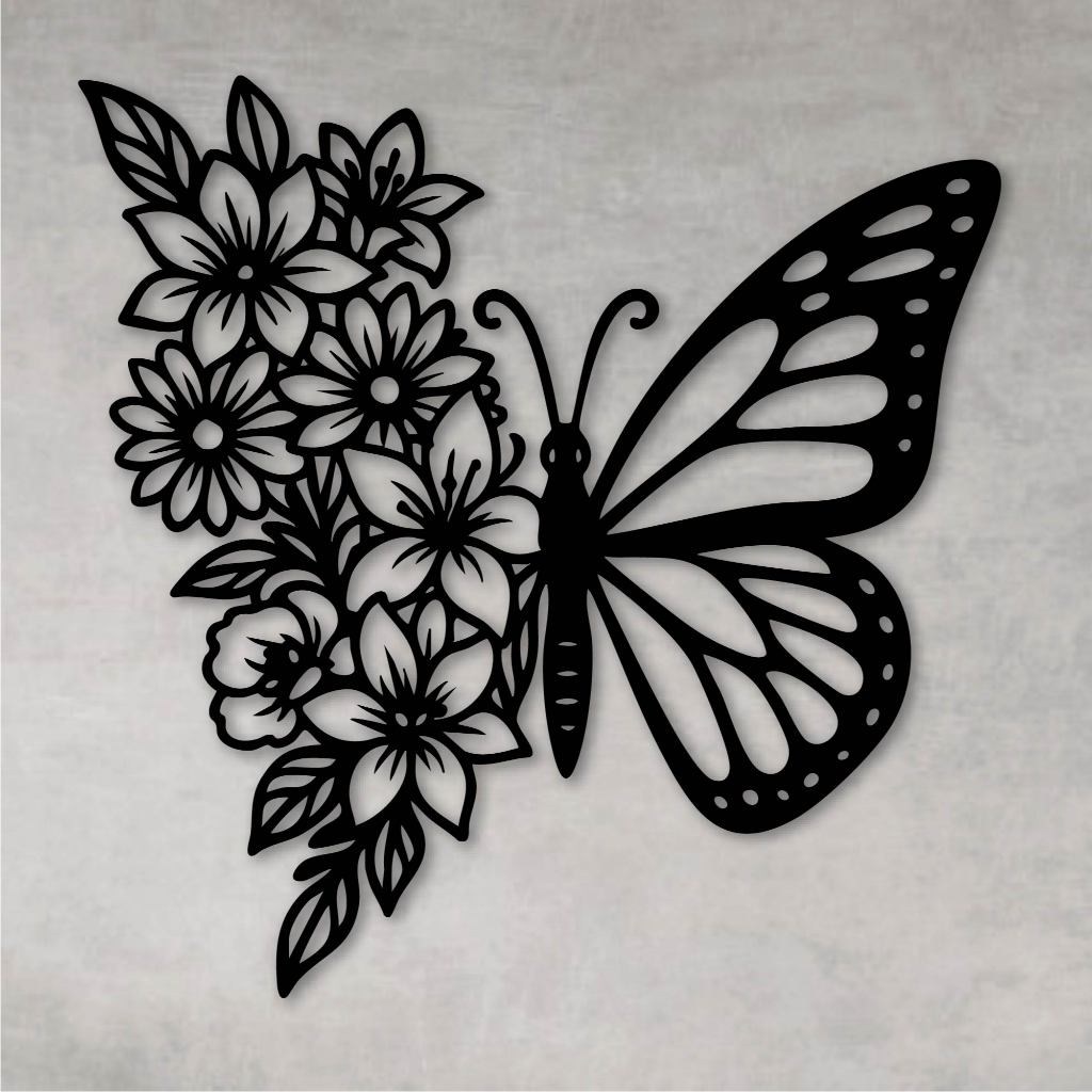 Quadro Decorativo Vazado Decoração Borboleta Florida MDF Preto 2