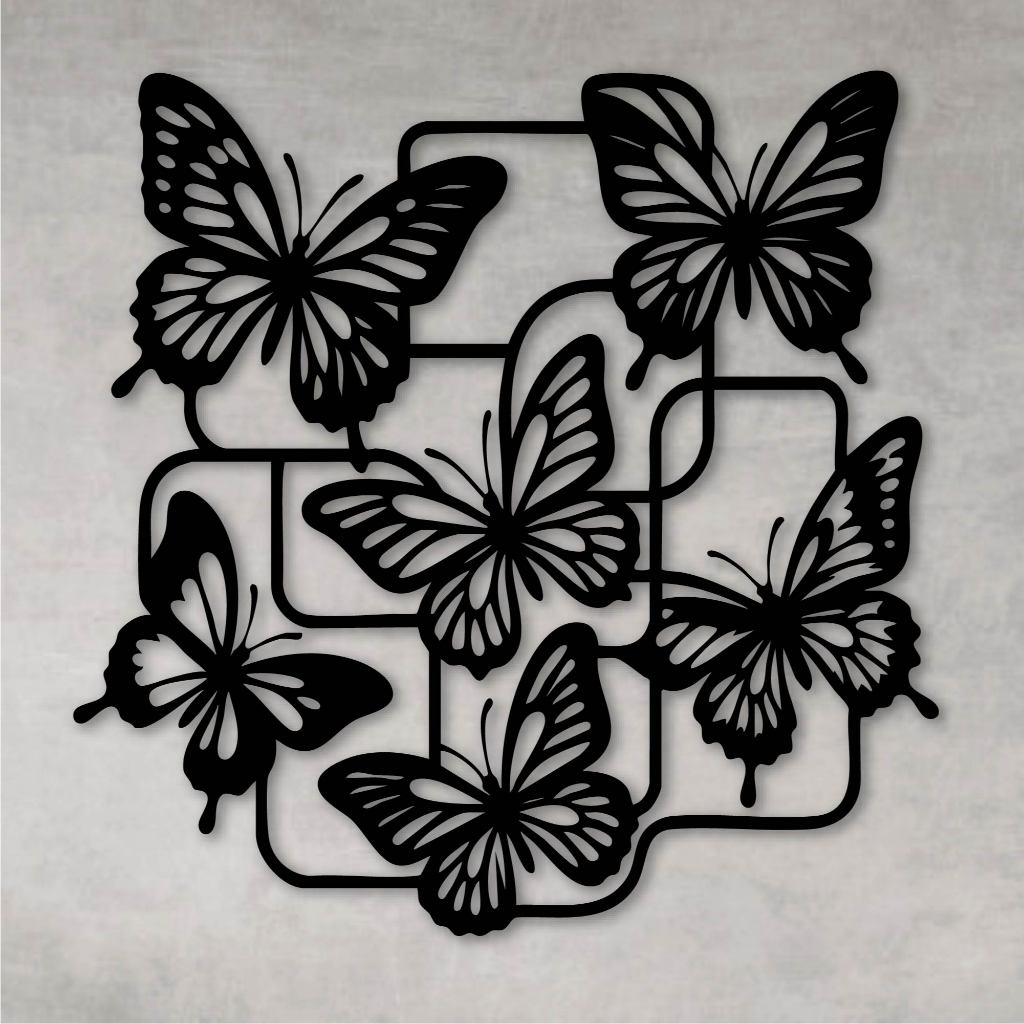 Quadro Decorativo Vazado Decoração Painel Borboletas MDF Preto