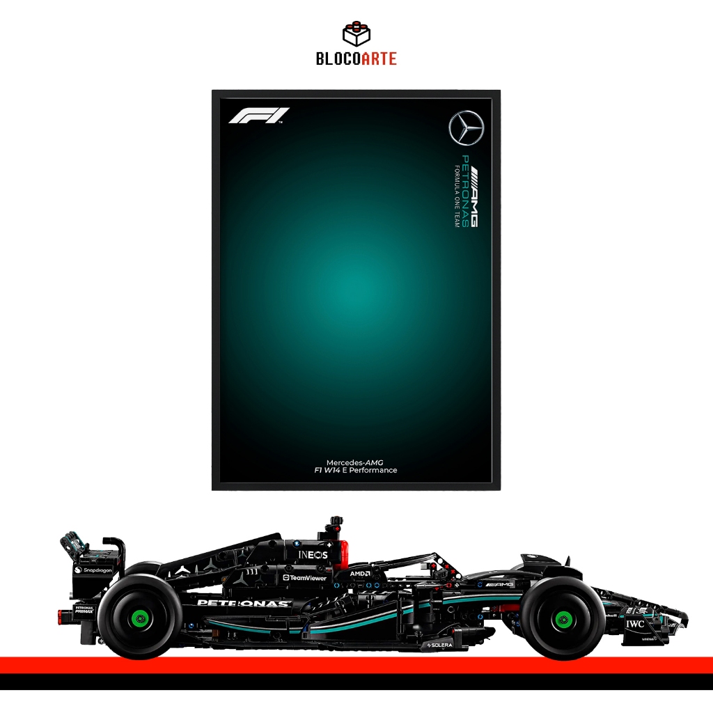 Quadro Expositor Lego F1 Mercedes FW14 - Moldura CAIXA ALTA (54x74cm) Variação Acrílico/Fosco