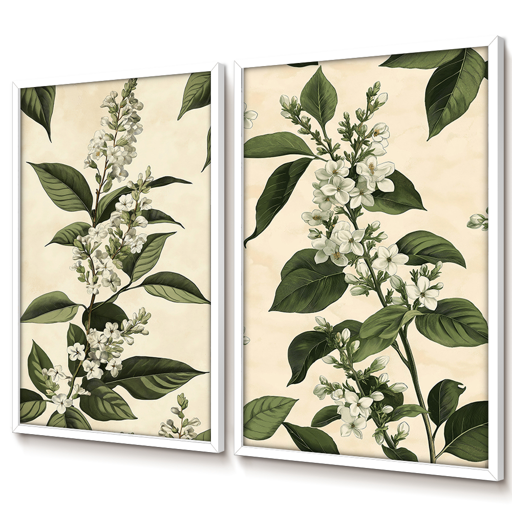 Quadro Folhagem Com Moldura E Vidro Quadro Decorativo Para Quarto Quadro Vintage Floral Natural Duo