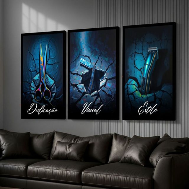 Quadro Grande Barbearia Dedicação Visual Estilo Moderno 3pçs