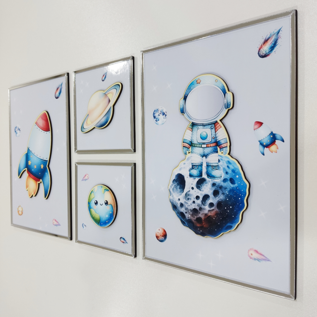 Quadro Infantil Astronauta - Decoração Quarto de Menino Bebê, Espaço Sideral, Astronomia, Planetas