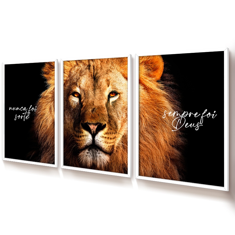 | Quadro Leão Moldura Frase Nunca Foi Sorte Sempre Foi Deus Quadro Sa... este produto | R$ 229,52 | 22% | 4.8/5 | 8 |