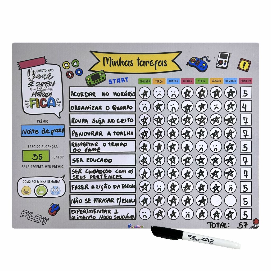 O produto Quadro Minhas Tarefas para Crianças Adolescentes é um item na subcategoria Quadros para Escrever e Suportes de Quadro (de Papelaria), disponível na Shopee Brasil por R$ 81,70 (5% de desconto sobre o preço original de R$ 86,00). Avaliado em 4.9/5 pelos compradores e 30 unidades vendidas, este produto se destaca pelo excelente custo-benefício.