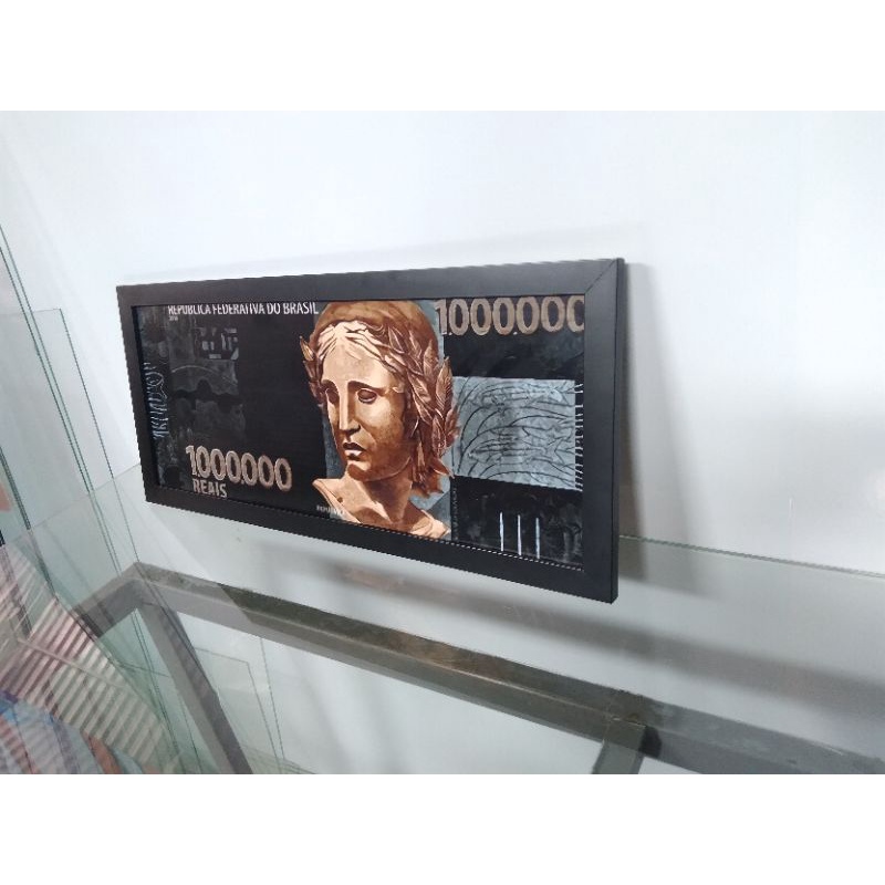 Quadro nota com moldura em mdf 3mm 50x20 Quadro decorativo nota 1 milhão quadros decorativos moderno