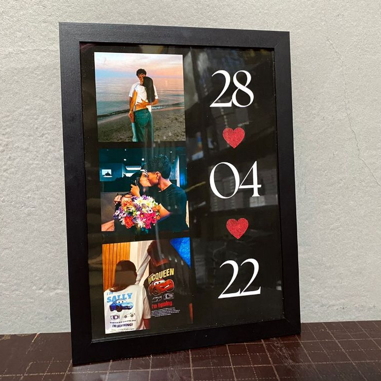 Bem vindo(a) à gráfica Bliss Print! Surpreenda quem você ama com um presente único: um quadro personalizado com 3 foto + uma data especial para vocês! Perfeito para presentes e decoração. OBS. MANDE A FOTO APOS A COMPRA. ESTÁ SOB ENCOMENDA PORQUE TEM GENTE QUE DEMORA PARA ENVIAR A FOTO. Quadro decorativo A4 com moldura preta. Papel fotográfico A4: 21x29cm. Com moldura: 24x33cm. Moldura em MDF. Fixador móvel. Fundo preto ou branco. Após a compra, enviar a foto no chat.