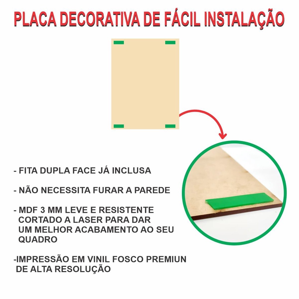 Observações - Caso deseje de outro tamanho por favor nos avise por chat !! - Não acompanha moldura - Finalizado em MDF 3mm adesivo vinílico fosco e fita dupla face - Material liso, sem relevos; - Como nossas imagens são impressas em material vinil brilho altamente durável pode ficar tranquilo, sua imagem não corre o risco de desbotar); - Fabricação própria; - O produto pode ocorrer de ter uma leve diferença de tom na cor da que está na tela do seu computador ou celular. - Impressão em alta resolução livre de imperfeições. - A limpeza pode ser realizada apenas com um pano seco macio, se desejar pode ser úmido, porém sem conter álcool ou produtos químicos