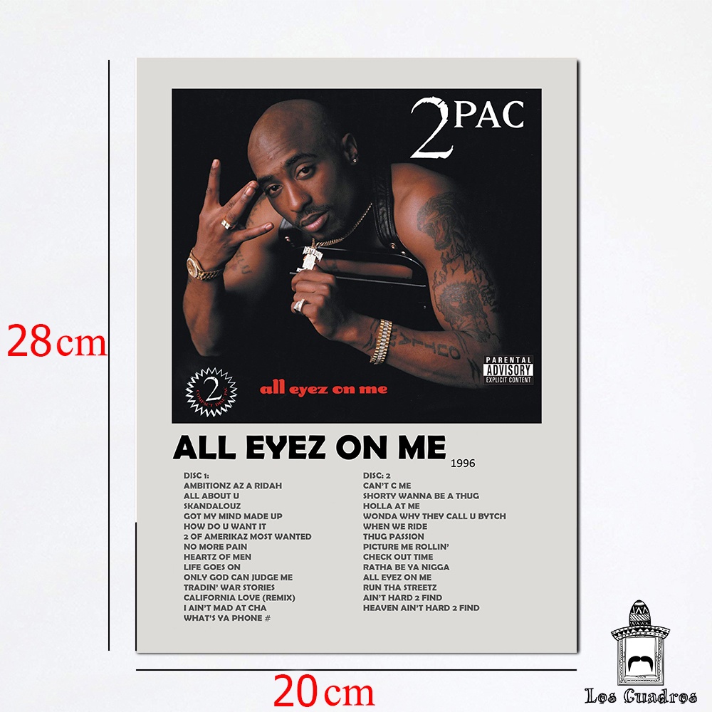 Quadro Placa Decorativa Tupac Shakur All Eyez On Me em MDF 28x20cm