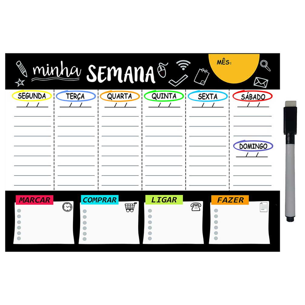 Quadro Planejador de Metal Semanal 20x26cm + Caneta