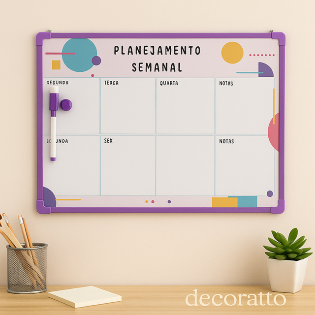 Quadro Planner Lousa Magnética de Anotações 30x40cm + Caneta + 2 Imãs -Planejamento Semanal Colorido