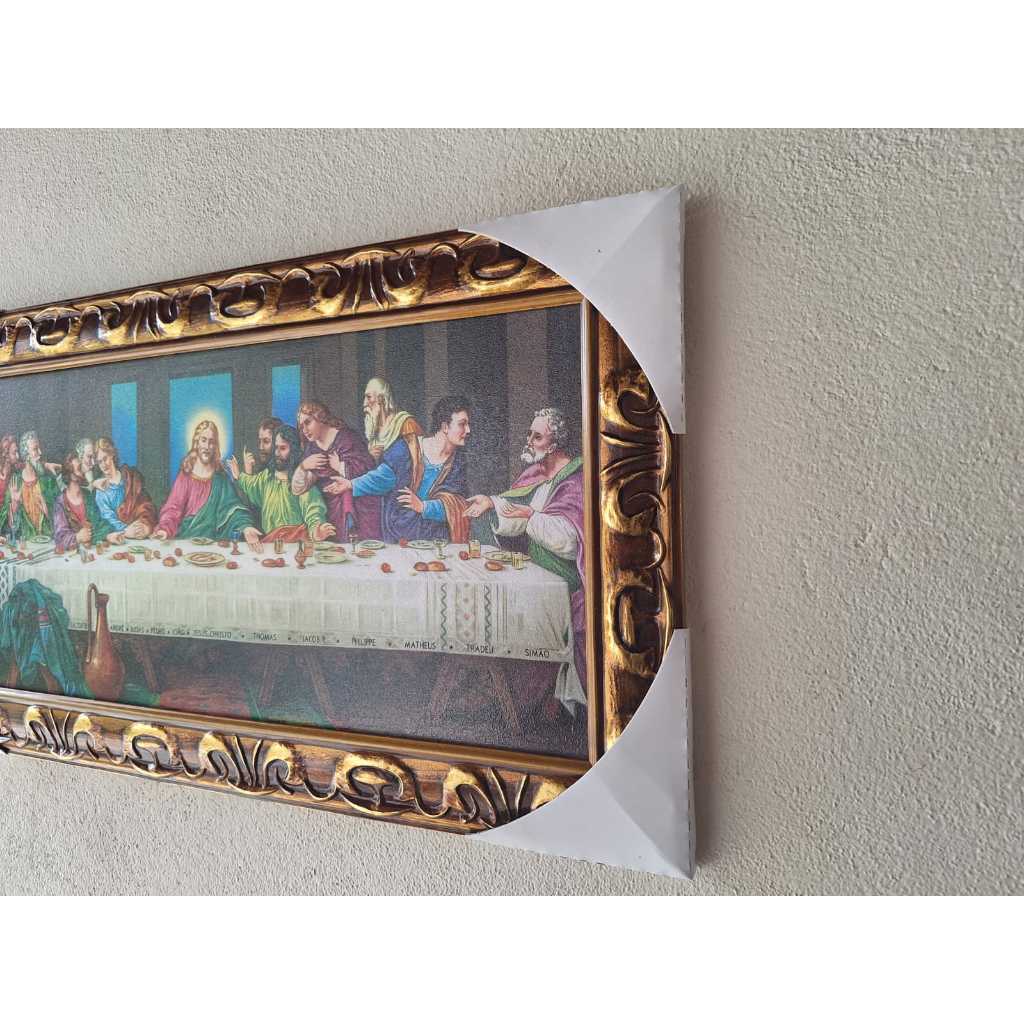 Nós da JC Artigos Religiosos, somos uma fabrica de quadros especializado em quadros decorativos, artigos religiosos de alta qualidade. Com muitas opções em nosso catálogo, temos orgulho em oferecer uma variedade de quadros para todos os tipos de ambientes, sejam eles salas, escritórios ou dormitórios. Nossos quadros estão disponíveis em tamanhos grandes e pequenos, e você pode escolher entre as opções de molduras. A segurança e a privacidade de nossos clientes são de extrema importância para nós. Por isso, oferecemos várias formas de pagamento e garantimos um processo de compra seguro. Além disso, temos uma equipe de atendimento ao cliente dedicada, sempre pronta para ajudar com qualquer dúvida ou problema. QUADRO SANTA CEIA 35X65CM RESINADO ESTAMPA LASER, COM FINA CAMADA DE PROTEÇÃO DE RESINA ACRILICA EUCATEX DE 1ª LINHA MOLDURA DE MADEIRA REFLORESTADA COM DETALHES DOURADO PENDURADOR TIPO TRIANGULO CANTONEIRA DE PROTEÇÃO