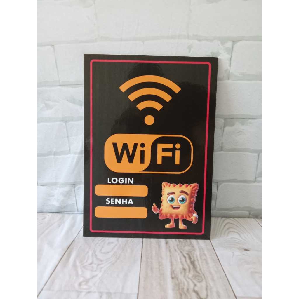 PLACA DECORATIVA EXCLUSIVA TEMA - PLACA WIFI PASTELARIA FICHA TÉCNICA: PLACAS MDF 3MM; LARGURA: 20CM; ALTURA: 28CM; IMAGEM IMPRESSA EM ALTA DEFINIÇÃO NO ADESIVO GLOSSY E LAMINADO COM ADESIVO TRANSPARENTE GARANTINDO ALTA DURABILIDADE; FITA ADESIVA EXTRA FORTE JÁ FIXADA NO VERSO DO PRODUTO PARA FÁCIL INSTALAÇÃO. OBS: NÃO ACOMPANHA MOLDURAS. ACOMPANHAM NO KIT: 1 PLACA WIFI COM LOGIN E SENHA 1 CANETA PRETA COM APAGADOR