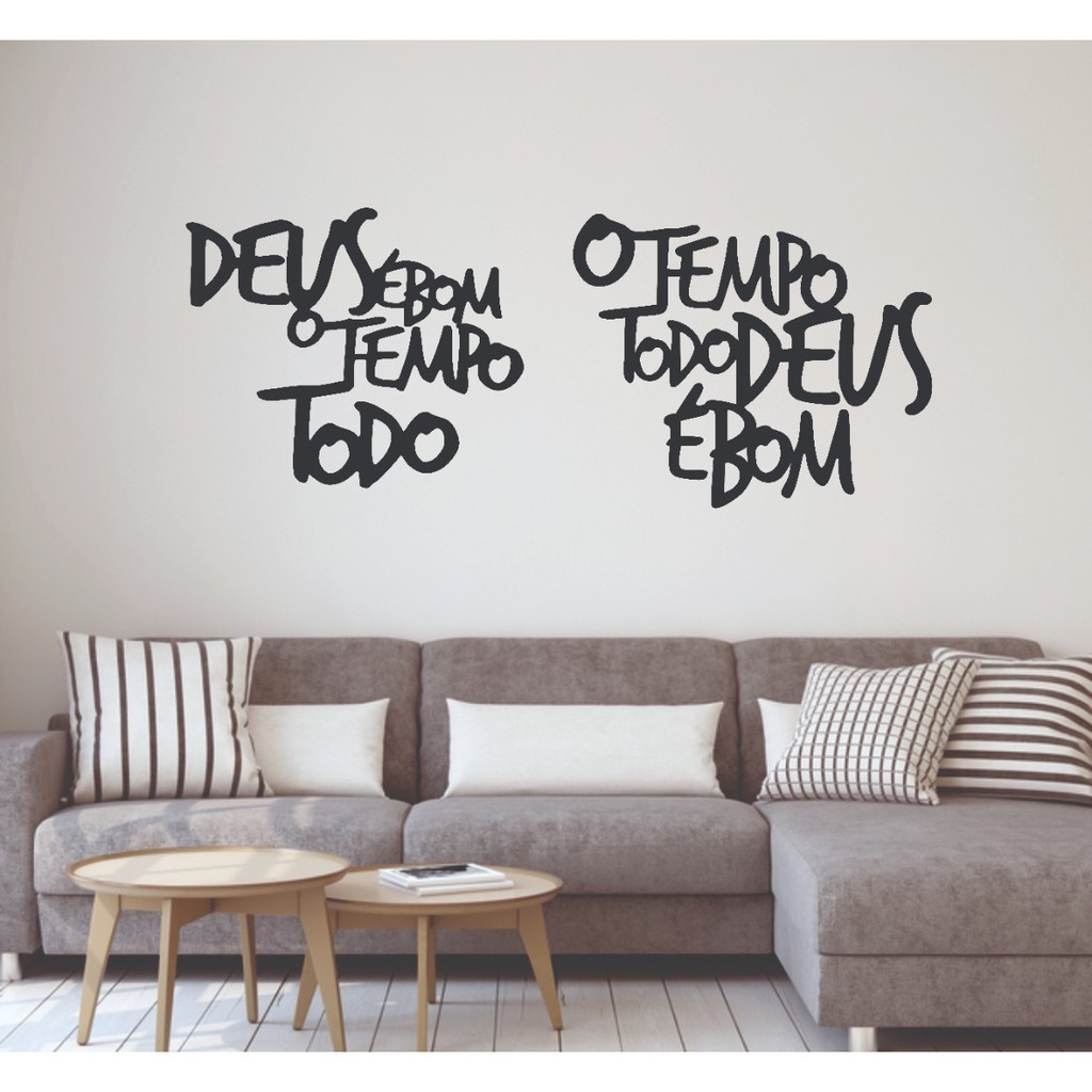 Deixe seu ambiente mais moderno e charmoso com nossas frases! Feito em mdf 3mm com corte à laser sem rebarbas e com acabamento perfeito. As peças combinam com diversos tipos de decoração e acrescentam estilo e sofisticação a qualquer ambiente. Graças ao seu material resistente os quadros são extremamente versáteis, podendo ser usados para decorar salas de estar, jantar, restaurantes, escritórios e home-offices. O design moderno e robusto do produto deixa o seu espaço muito mais agradável e aconchegante. Esse kit vai com as 2 frases: DEUS É BOM O TEMPO TODO O TEMPO TODO DEUS É BOM MDF: 3mm Cor: Preto Fosco Tamanho: 30x30cm As duas peças juntas: 60x30cm Forma de fixação: As peças possuem fita dupla face 3M e está pronta para ser fixada na parede. LIMPEZA / MANUTENÇÃO Para limpeza, utilize apenas um pano seco ou pincel (sem produtos químicos ou água) para garantir a durabilidade. GARANTIA / EMBALAGEM - Embalagem segura para que receba seu produto em perfeito estado. - Segurança da compra com vendedor de ótima qualificação! *Visite nossos anúncios e veja outros modelos de frases, lettering, quadros vazados, luminárias e lembrancinhas em MDF. Temos os melhores preços do , pois somos fabricantes! Agradecemos a todos pelas visitas, perguntas e principalmente por confiarem no nosso trabalho! Qualquer dúvida estamos à disposição para responder! EQUIPE L&C LASER