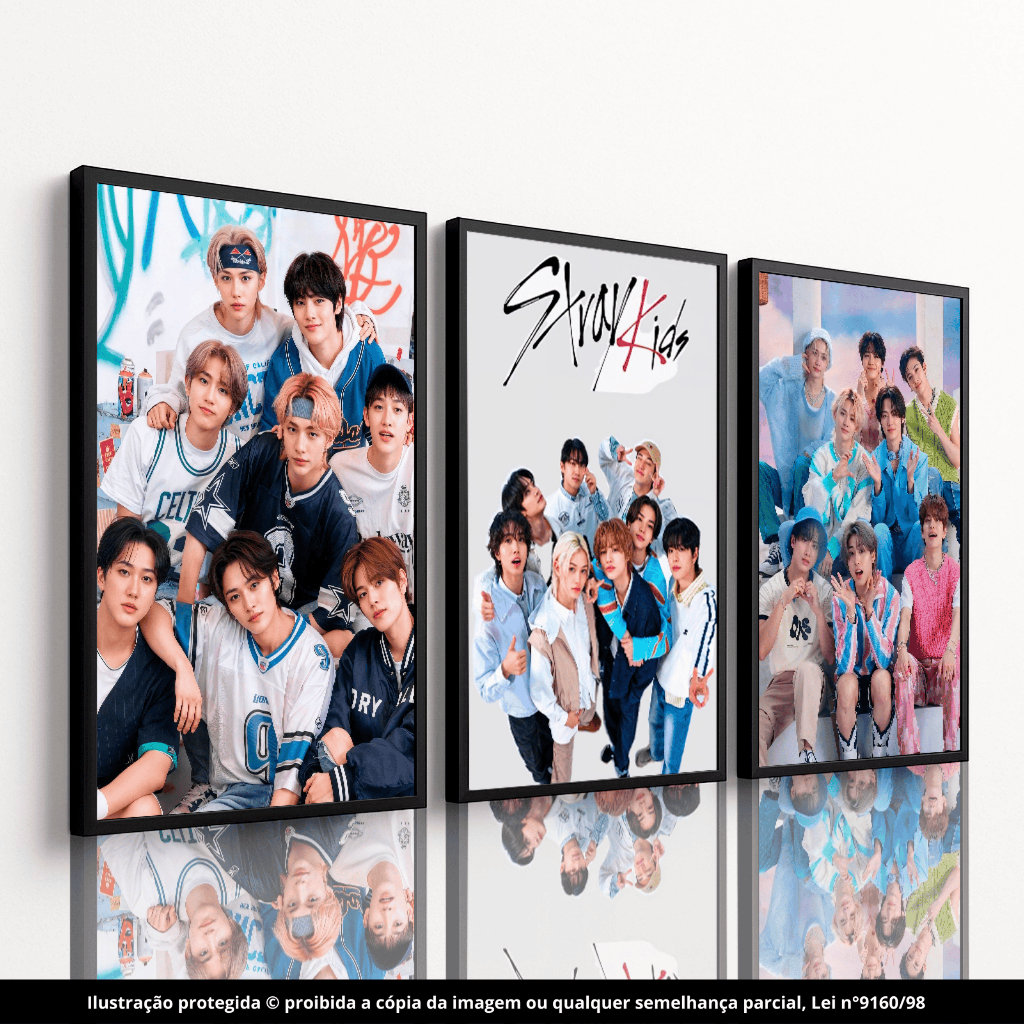 Quadros Decorativos 3 Peças K-Pop Stray Kids – Arte Moderna para Quarto e Sala