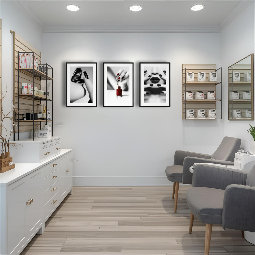 Quadros Decorativos 3 Peças Manicure Salao de Beleza Cabelereira Empreendedora Mulher Unha Esmalte
