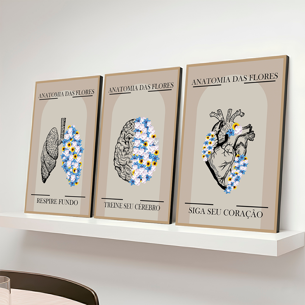 Quadros Decorativos Anatomia Das Flores Medicina Médicos Bege Boho Sala Quarto Escritório