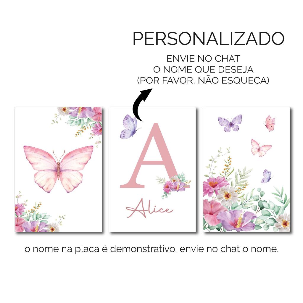 Quadros Decorativos Borboletas Com Nome, Decoração Quarto De Irmãs, Jardim, Moldura Fake, Floral