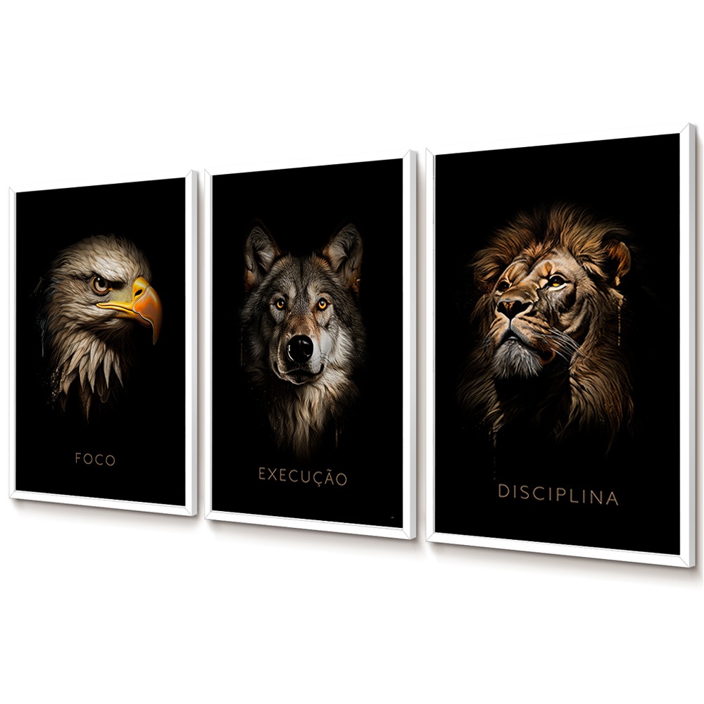 Quadros Decorativos com Moldura Trio Sala Quarto Escritório Arte Arquétipos Foco Execução Disciplina