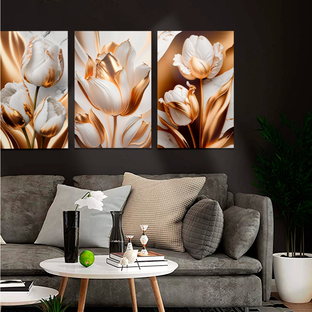 quadros decorativos flores douradas tulipas ouro 3 peças (007 B/D)