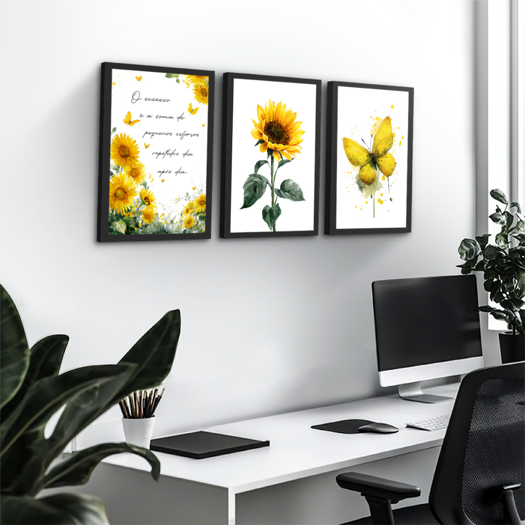 Quadros Decorativos Girassol Borboletas Motivacional Sucesso Delicado Sala Cozinha Quarto Hall de Entrada
