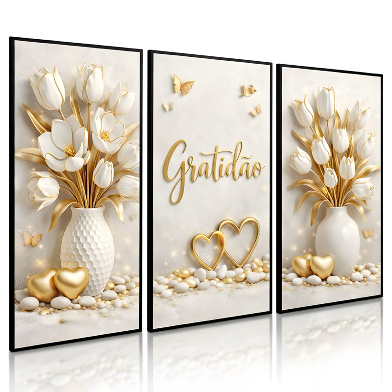 | Quadros Decorativos Gratidão Fé Religioso Vaso Rosas Brancas Gold Sala este produto | R$ 19,90 | 50% | 4.9/5 | 141 |