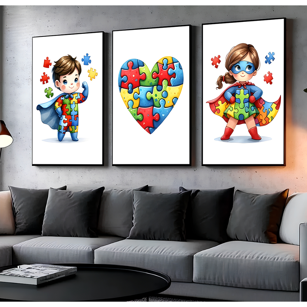 Quadros Decorativos Infantil Austimo (TEA) Para Sala Quarto Escritório Mosaico 3 Peças