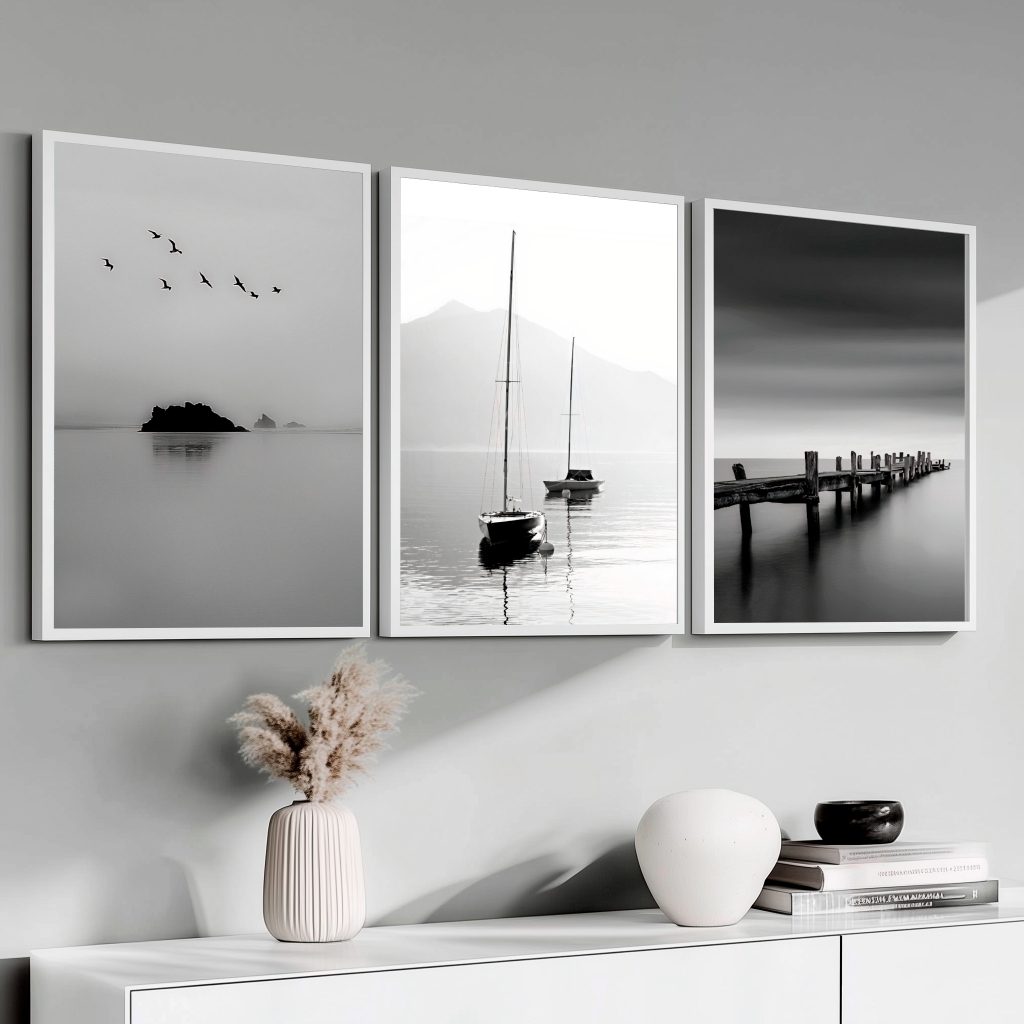 Quadros Decorativos Kit com 3 Moldura 50X70 cm Grande Sala Hall