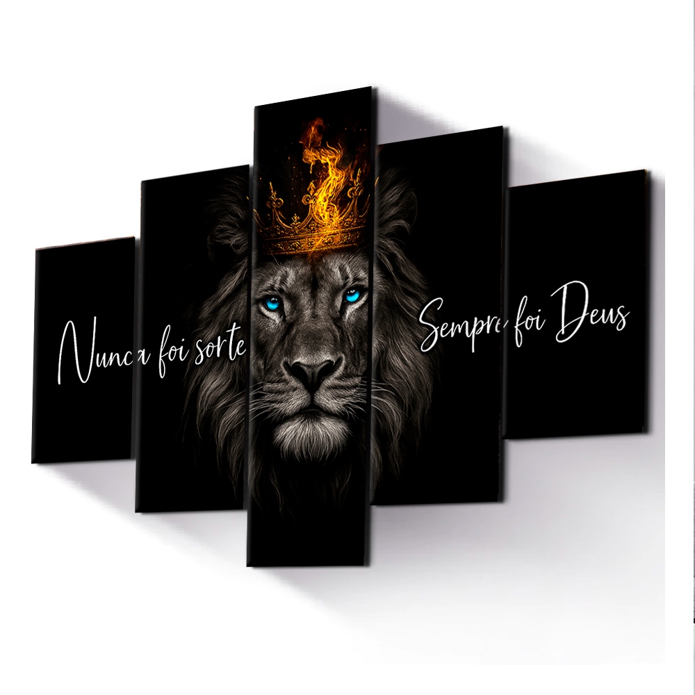 Quadros Decorativos Leão Judá King Nunca Foi Sorte 5 Peças Mosaico Sala Quarto Escritório Hall