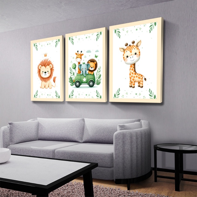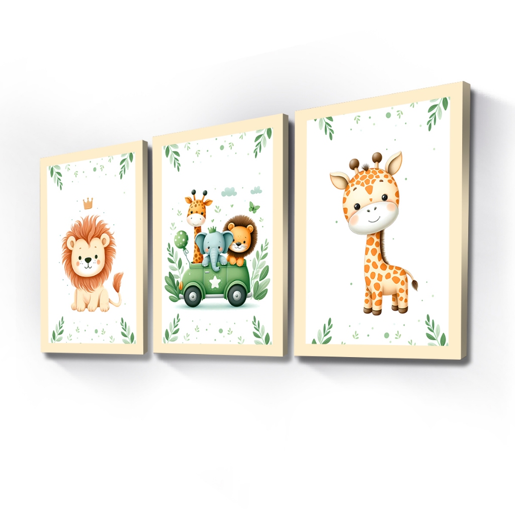 Quadros Decorativos Safari Aquarela Infantil Mosaico Sala Quarto Escritório
