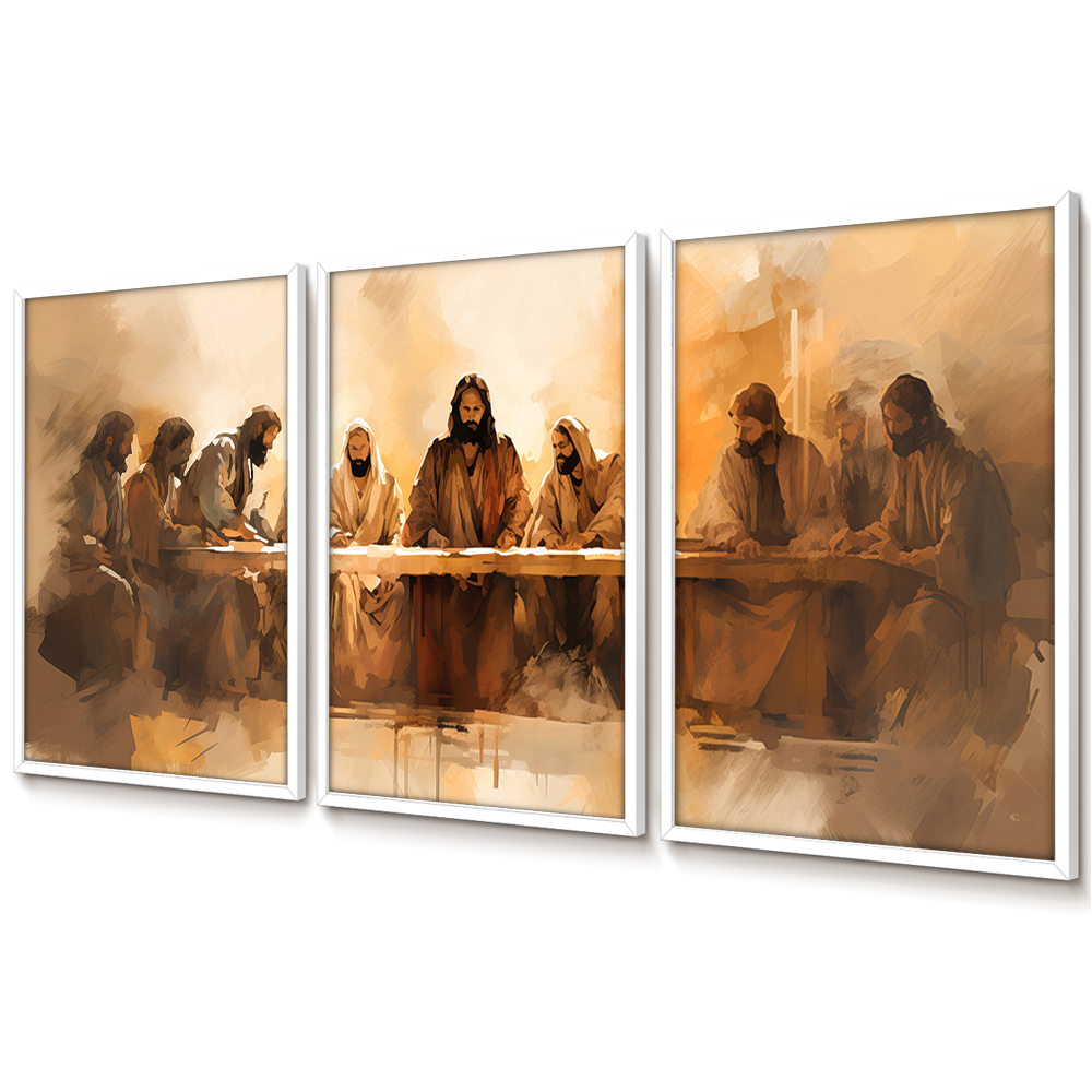 Quadros Decorativos Sala Quarto Grande Trio Com Moldura E Vidro Arte Santa Ceia Jesus E Apóstolos