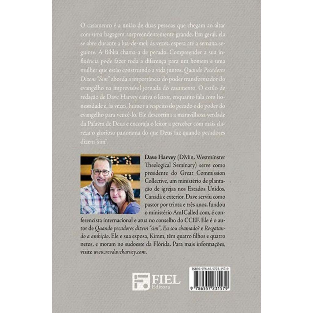O livro Quando pecadores dizem “sim”, traz como tema que o casamento é a união de duas pessoas que chegam ao altar com uma bagagem surpreendentemente grande. Em geral, ela se abre durante a lua-de-mel; às vezes, espera até à semana seguinte. A Bíblia chama-a de pecado. Compreender a sua influência pode fazer toda a diferença para um homem e uma mulher que estão construindo a vida juntos. Quando Pecadores Dizem “Sim” aborda a importância do poder transformador do evangelho na imprevisível jornada do casamento. O estilo de redação de Dave Harvey cativa o leitor, enquanto fala com honestidade e, às vezes, humor a respeito do pecado e do poder do evangelho para vencê-lo. Ele descortina a maravilhosa verdade da Palavra de Deus e encoraja o leitor a perceber com mais clareza o glorioso panorama do que Deus faz quando pecadores dizem “Sim”. Páginas: 176