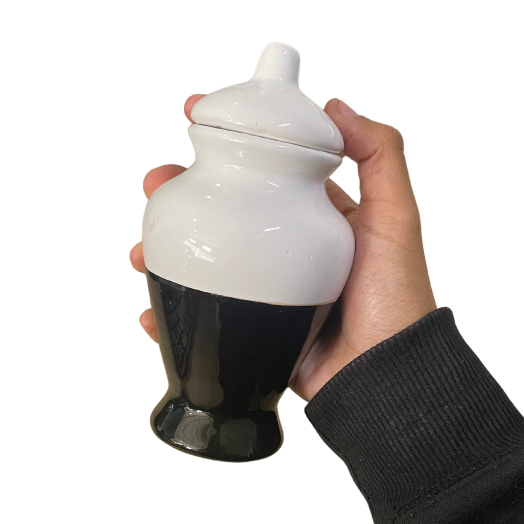 Quartinha De Louça Pequena Bicolor Unidade Umbanda Além de sua funcionalidade, a Quartinha De Louça é uma forma de expressar fé e conexão com as tradições. Cada detalhe foi pensado para refletir a riqueza cultural e espiritual que a Umbanda representa. Adicione um toque especial à sua casa ou ao seu espaço sagrado com esta peça única. ---- Ficha Técnica - Produto Novo - Produto de Procedência e Grande Qualidade - Feito de Cerâmica - Masculina / Macho ---- Medidas - Altura Total: 15 cm - Altura Sem a Tampa: 12 cm - Diâmetro da Boca: 5 cm - Diâmetro da Base: 4,5 cm - Peso: 270g - Capacidade: 150 ml (Aproximadamente) OBS: Valor para unidade, todas as informações a cima podem conter pequenas variações.