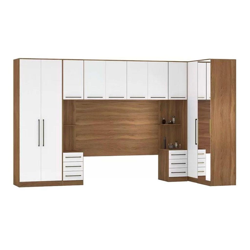Quarto Casal Modulado Irlanda 7 Peças (3 Armários + 1 Ponte Aérea + 3 Complementos) QCM158 Amendola/Branco - Demóbile