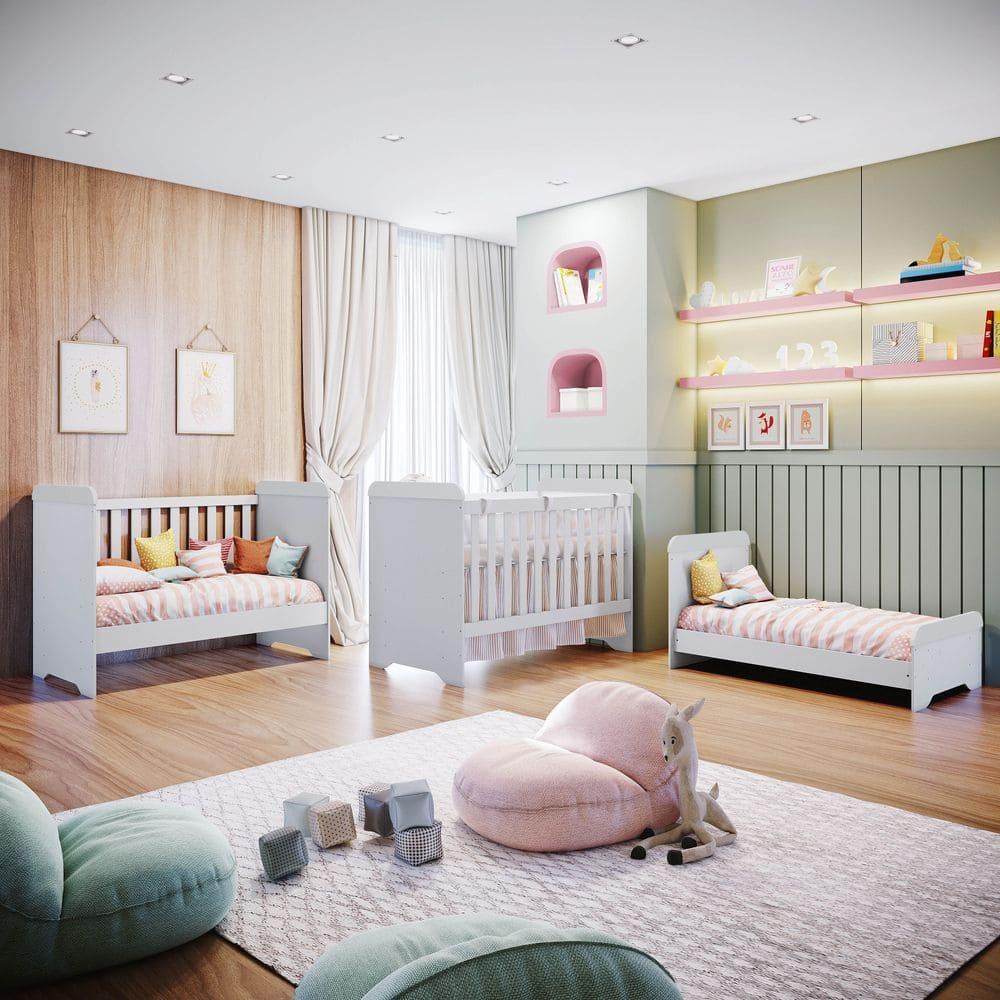 Quarto de Bebê Ariel Berço 3 em 1 Gabrielle Guarda Roupa Infantil Branco Carolina Baby