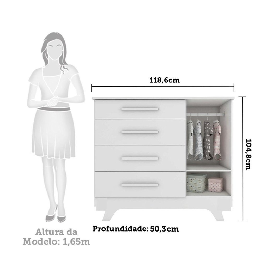 Quarto de Bebê com Cômoda e Berço 100% MDF Jolie Retrô Branco/Brilho