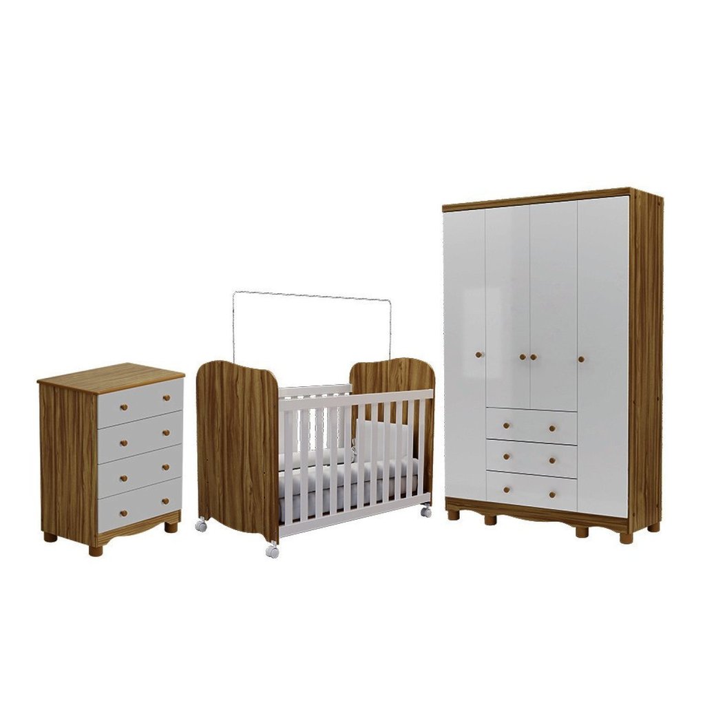 Quarto de Bebê com Guarda Roupas 4 Portas Cômoda e Berço com Rodizio Mimo 100% Mdf Espresso Móveis Branco/Amêndoa