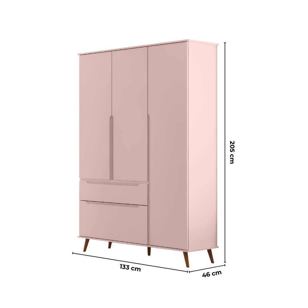 Quarto de Bebê Completo 3 Peças Berço Minicama 2 em 1, Cômoda e Guarda-Roupa Retrô 100% MDF Melinda Rosê Rosê