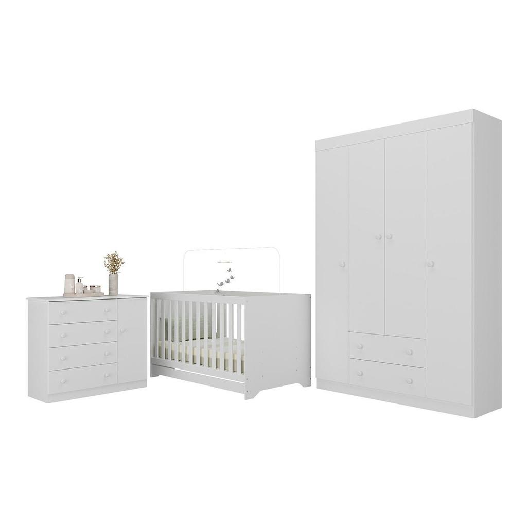 Cada detalhe do Quarto de Bebê Completo com Berço Americano 3 em 1 p/Colchão 130x70cm Multimóveis MP4581 foi pensado para acolher o seu pequeno com amor, conforto e segurança. Um espaço encantador que transmite tranquilidade e transforma os primeiros momentos do bebê em lembranças cheias de ternura. Diferenciais: - 3 anos de garantia contra defeitos de fabricação e material. - Conjunto produzido em madeira de reflorestamento (MDP 12/15mm) com acabamento acetinado (cerca de 20% de brilho): sustentabilidade e durabilidade. - Berço 3 em 1 que se transforma em sofá e minicama, acompanhando o crescimento do bebê. - Lastro em madeira com 3 regulagens de altura e suporte para mosquiteiro para noites mais tranquilas e protegidas. - Grade Soft (PVC): ecologicamente correta, com matéria-prima livre de metais pesados, atóxica e com proteção antiamarelamento. - Berço certificado pelo INMETRO (Selo nº 0000085/2018). - Padrão americano (tamanho do colchão indicado: 130x70cm). Colchão não incluso. - Guarda-roupa com 4 portas e 2 gavetas: amplo espaço para organizar roupinhas e acessórios. - Cômoda com 1 porta e 4 gavetas. - Corrediças telescópicas: abertura total e silenciosa das gavetas. - Cabideiro em alumínio: permite acomodar roupas longas e curtas para que não amassem. - Puxadores em ABS delicados e práticos. - Rodapés: visual elegante para o guarda-roupa e a cômoda. - Sistema antitombamento no guarda-roupa e cômoda: proporciona segurança para o bebê e tranquilidade aos pais. Conteúdo da Embalagem: 1 (um) Berço 1 (um) Guarda-roupa 1 (uma) Cômoda Manual de Montagem Kit Ferragem Dimensões do Produto Montado: Berço - Altura: 80,5cm | Largura: 133cm | Profundidade: 77,5cm Guarda-roupa - Altura: 184cm | Largura: 122cm | Profundidade: 41cm Cômoda - Altura: 83cm | Largura: 95cm | Profundidade: 42cm *Você pode consultar as medidas detalhadas na imagem técnica do produto. Observações Importantes: *As cores dos produtos podem sofrer variações de tonalidade de acordo com as configurações do seu dispositivo. *Aqui na Loja Multimóveis, você pode concluir sua compra facilmente com toda segurança. A entrega é garantida e você está em 1° lugar. *Imagens meramente ilustrativas (decoração não inclusa). *Os produtos serão entregues desmontados e não disponibilizamos o serviço de montagem.