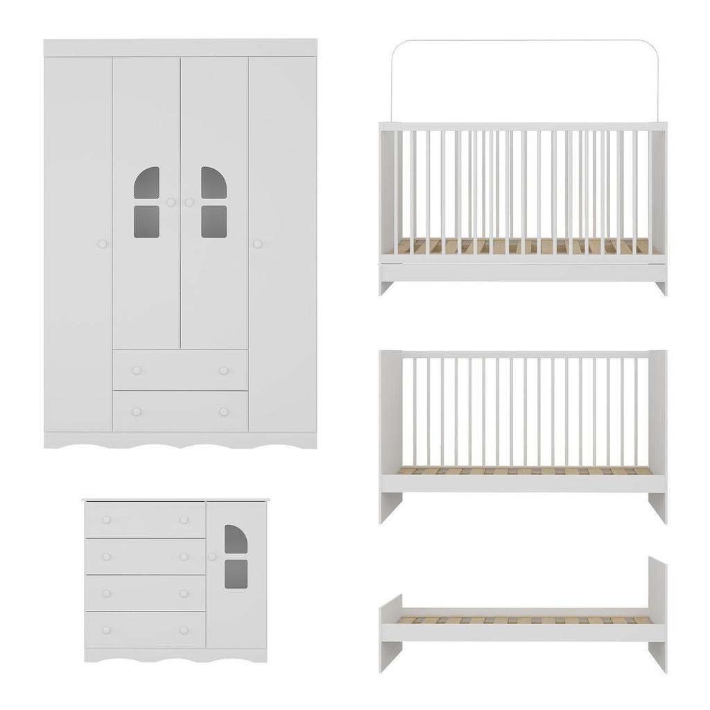 Cada detalhe do Quarto de Bebê Completo com Berço 3 em 1 para Colchão 130x60cm Multimóveis Liz MP4551 foi pensado para acolher o seu pequeno com amor, conforto e segurança. Um espaço encantador que transmite tranquilidade e transforma os primeiros momentos do bebê em lembranças cheias de ternura. Diferenciais: - 3 anos de garantia contra defeitos de fabricação e material. - Conjunto produzido em madeira de reflorestamento (MDP/MDF 12/15mm) com acabamento acetinado (cerca de 20% de brilho): sustentabilidade e durabilidade. - Berço 3 em 1 que se transforma em sofá e minicama, acompanhando o crescimento do bebê. - Lastro em madeira com 3 regulagens de altura e suporte para mosquiteiro para noites mais tranquilas e protegidas. - Berço certificado pelo INMETRO (Selo nº 000332/2025). - Padrão nacional (tamanho do colchão indicado: 130x60cm). Colchão não incluso. - Frentes e rodapés (guarda-roupa e cômoda) produzidos em MDF. - Guarda-roupa com 4 portas e 2 gavetas: amplo espaço para organizar roupinhas e acessórios. - Cômoda com 1 porta e 4 gavetas. - Detalhes de vidro incolor temperado 3mm nas portas: toque charmoso que permite visualizar o interior dos móveis. - Corrediças telescópicas: abertura total e silenciosa das gavetas. - Cabideiro em alumínio: permite acomodar roupas longas e curtas para que não amassem. - Puxadores em ABS delicados e práticos. - Rodapés usinados: visual elegante para o guarda-roupa e a cômoda. - Sistema antitombamento no guarda-roupa e cômoda: proporciona segurança para o bebê e tranquilidade aos pais. Conteúdo da Embalagem: 1 (um) Berço 1 (um) Guarda-roupa 1 (uma) Cômoda Manual de Montagem Kit Ferragem Dimensões do Produto Montado: Berço - Altura: 80,5cm | Largura: 133cm | Profundidade: 66cm Guarda-roupa - Altura: 184cm | Largura: 122cm | Profundidade: 41cm Cômoda - Altura: 83cm | Largura: 95cm | Profundidade: 42cm *Você pode consultar as medidas detalhadas na imagem técnica do produto. Observações Importantes: *As cores dos produtos podem sofrer variações de tonalidade de acordo com as configurações do seu dispositivo. *Aqui na Loja Multimóveis, você pode concluir sua compra facilmente com toda segurança. A entrega é garantida e você está em 1° lugar. *Imagens meramente ilustrativas (decoração não inclusa). *Os produtos serão entregues desmontados e não disponibilizamos o serviço de montagem.