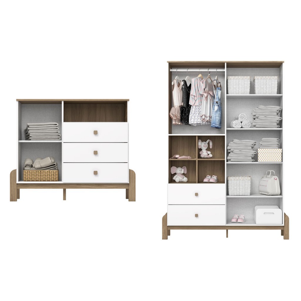 Quarto de Bebê Completo Ternura 5 Portas 5 Gavetas Branco/Jequitibá - Henn