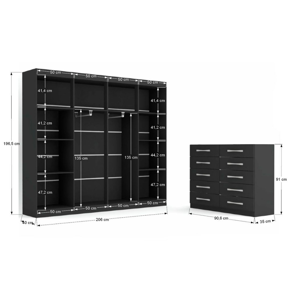 Quarto de Casal Ele e Ela Closet 8 Prateleiras Cômoda 10 Gavetas