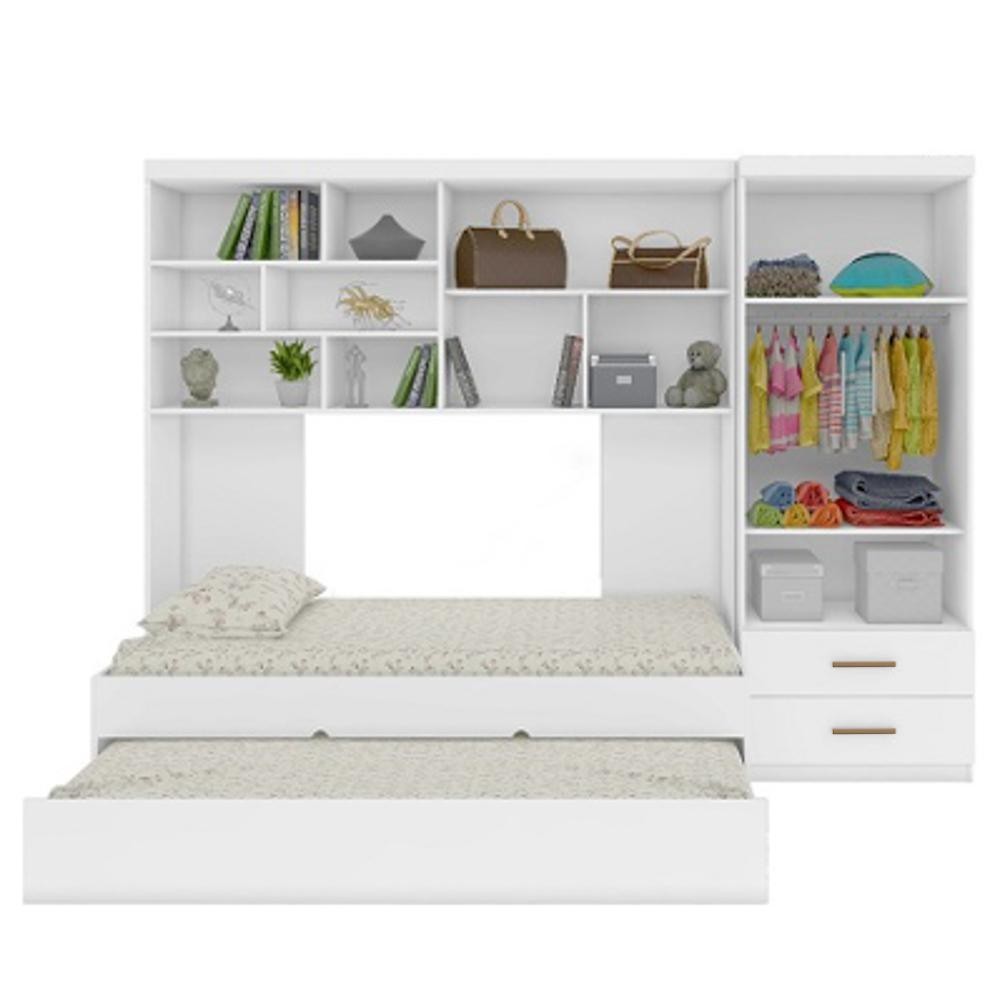 Quarto Infantil Chiara Guarda Roupa e Aéreo 2 Portas com Cama e Auxiliar Branco - Phoenix