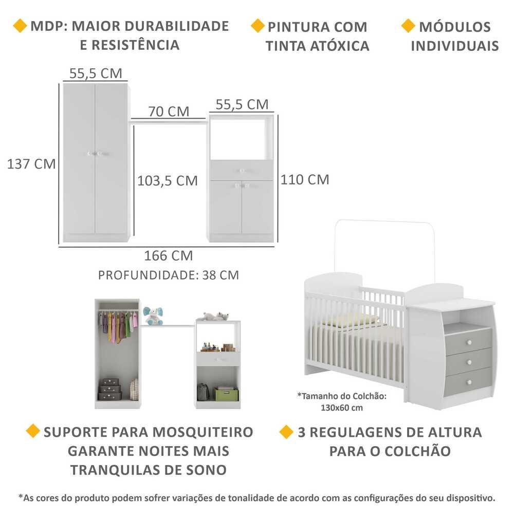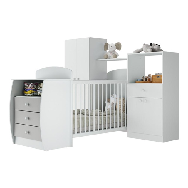 Quarto Infantil com Berço-Cômoda Laura Multimóveis Branco/Cinza