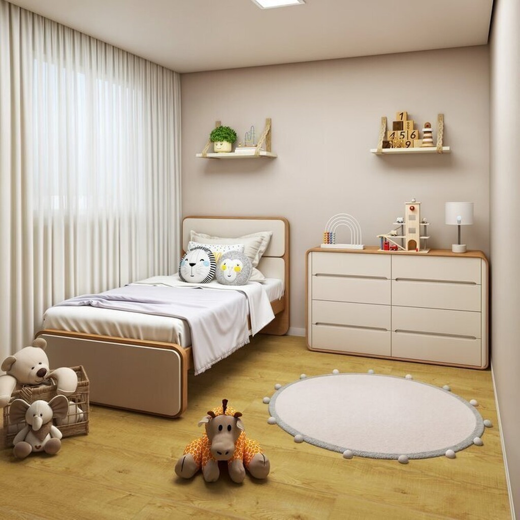 Transforme o quarto do seu pequeno em um espaço mágico e seguro com nosso conjunto de móveis para quarto de criança! Com conforto e organização, ele proporciona uma noite de sono tranquila e um ambiente encantador. A cama com bordas arredondadas e cabeceira estofada oferece um toque de aconchego e segurança, enquanto a cômoda espaçosa mantém roupas, brinquedos organizados. Perfeito para criar um quarto dos sonhos, onde seu filho pode dormir e brincar, feliz e protegido! É ideal na decoração para quarto de menina? Sim, é perfeito para meninas e na decoração para quarto de meninos. Serve na decoração para quarto pequeno? Sim. Os móveis para quarto infantil podem ser usados em outro ambiente? Sim, basta usar a criatividade. Garantia: 03 Meses Acabamento: Pintura UV Possui Portas: Não Possui Rodízios: Não Possui Serviço Montagem: 114259443 Acompanha Colchão: Não Ambiente Principal: Quarto Infantil Material Principal: MDF/MDP Tipo de Guarda-roupa: Infantil Permite a Utilização de Cama Auxiliar: Sim Marca: Móveis Lopas Cor do Produto: Amêndoa Clean/Off White Cor Predominante: Bege