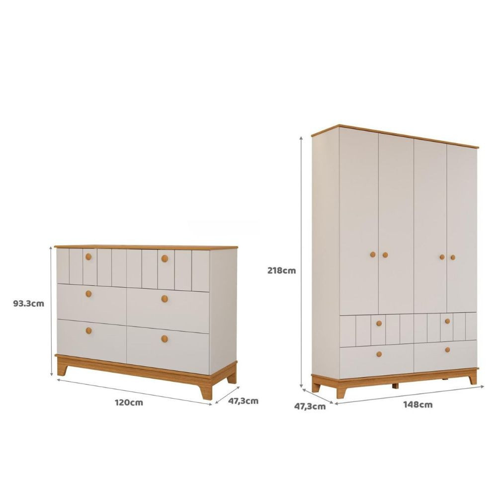 A Cômoda Infantil 6 Gavetas com Pés 100 MDF Liza Permobili é a solução ideal para manter o quarto do seu pequeno sempre organizado. Suas 6 gavetas, equipadas com corrediças telescópicas, oferecem amplo espaço para armazenar roupas, brinquedos e acessórios, garantindo que tudo esteja sempre ao seu alcance. Com capacidade para suportar até 3 kg por gaveta, a Cômoda de Bebê Liza é perfeita para acompanhar o crescimento do seu filho com praticidade e segurança. O Guarda-Roupa de Bebê Liza combina durabilidade e estilo para o quarto do seu pequeno. Equipado com 4 portas, 4 gavetas espaçosas e prateleiras internas, proporciona amplo espaço para organizar roupas, acessórios e brinquedos. As dobradiças metálicas e corrediças telescópicas garantem suavidade e durabilidade no uso diário. Com capacidade para suportar até 3 kg por gaveta, este guarda-roupa é a escolha ideal para manter o quarto do seu filho organizado e funcional por muito tempo. Características Cômoda: Estrutura em MDF Acabamento em Pintura UV 6 Gavetas Corrediças telescópicas Cada gaveta suporta até 3kg Puxadores em madeira maciça Características Guarda Roupa: Estrutura em MDF Acabamento em Pintura UV 4 Portas 4 Gavetas Corrediças telescópicas Dobradiças Slow Motion Suporta até 25kg Cada gaveta suporta até 3kg Puxadores em madeira maciça Pés em MDF Dimensões Cômoda: Altura: 93,3 cm Largura: 120 cm Profundidade: 47,3 cm Peso: 54,15 kg Dimensões Guarda Roupa: Altura: 218 cm Largura: 148 cm Profundidade: 47,3 cm Peso: 111,15 kg Peso: 165,30 kg Garantia do fornecedor de 3 meses