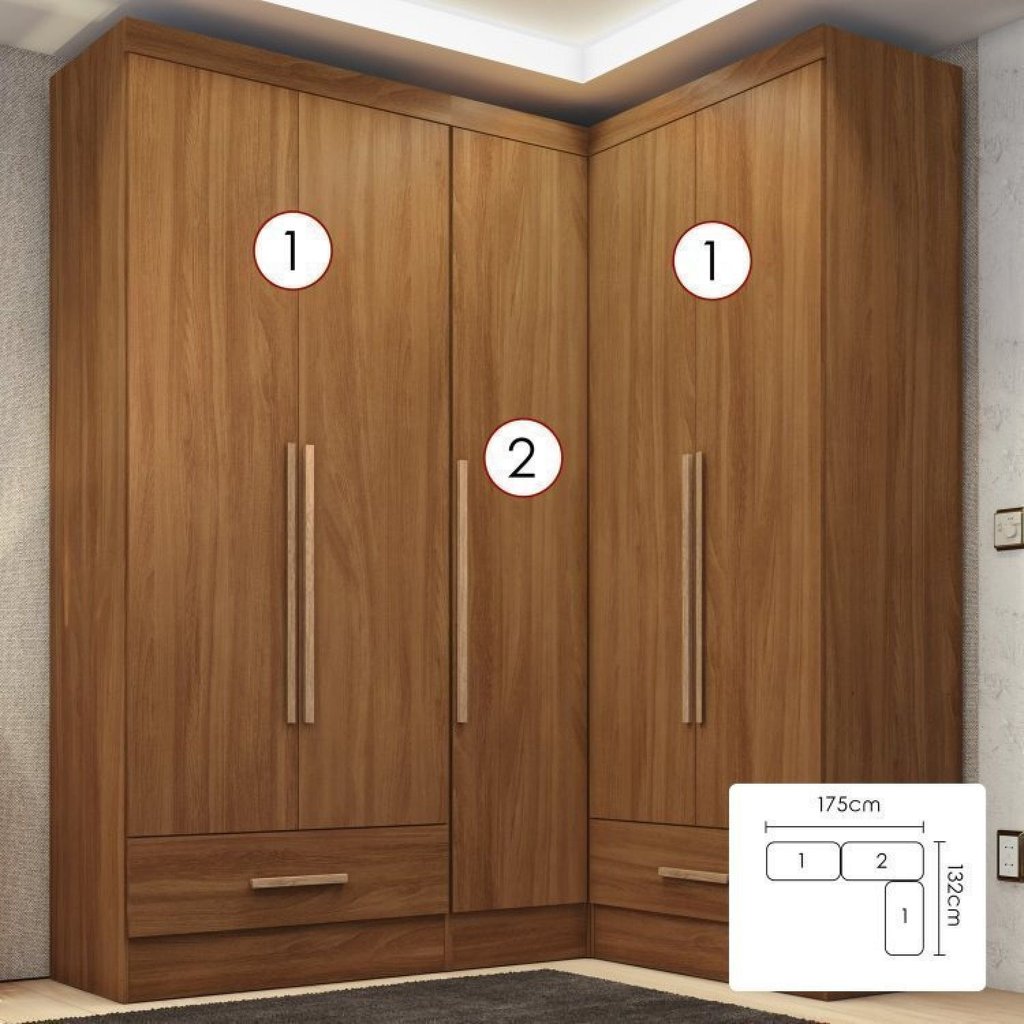Quarto Modulado de Canto 100% MDF 3 Peças 5 Portas 2 Gavetas Smart Plus Espresso Móveis Cinamomo
